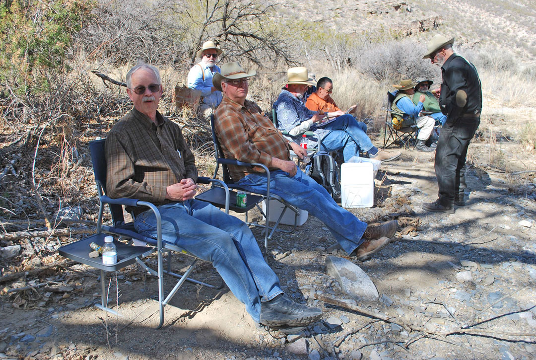The group ate lunch under the old cottonwoods at Rock Art Spring.